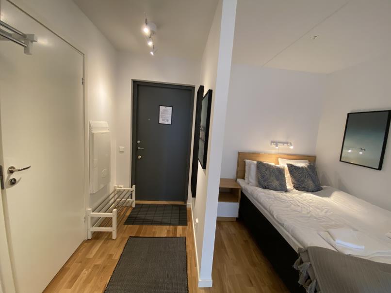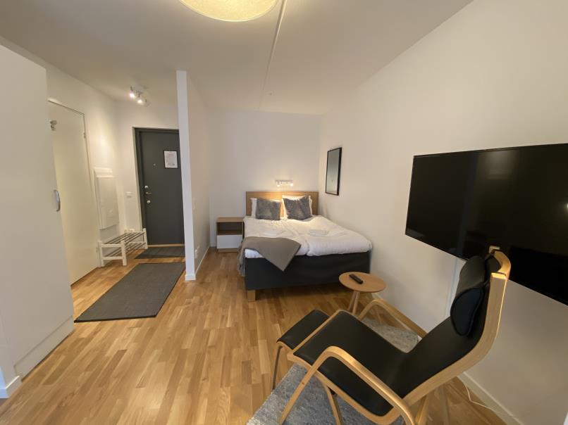 This fully furnished and equipped apartment is available for rent in a modern area of Solna in Stockholm. The apartment is located in a newly built area with very good access to city center by public transportation.