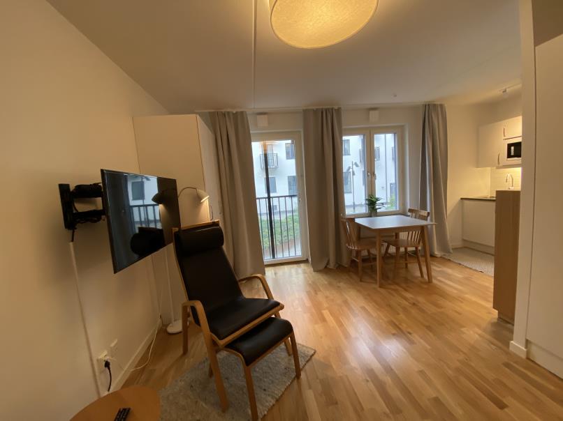 This fully furnished and equipped apartment is available for rent in a modern area of Solna in Stockholm. The apartment is located in a newly built area with very good access to city center by public transportation.
