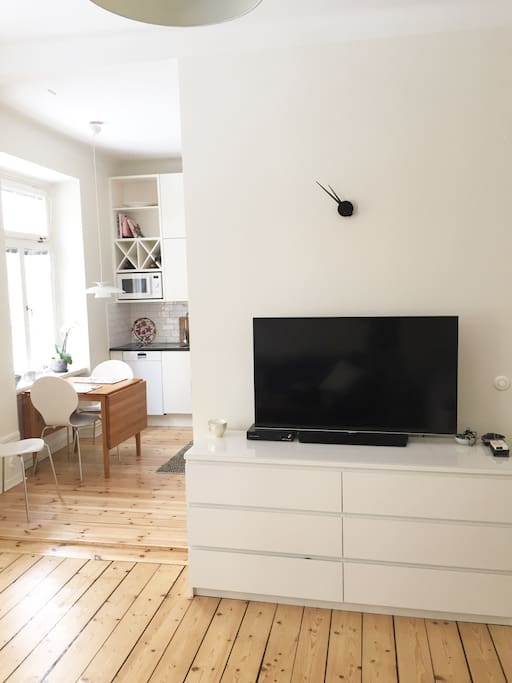 A light, modern and cosy apartment that is for rental for 6 months starting January 7th with the possibility of further extension. The apartment has 3.0 m in ceiling height with a beautiful wooden floor and is perfect for a couple. It is fully equipped and has everything you might need. A modern kitchen with a dining room for 4 people, a spacious and cosy living room with a queen size bed (140 cm), a clean bathroom and a hall way with two closets. The house also has a big and clean laundry room. The location can’t be better with a 2 minute walk to S:t Eriksplans tube station and literally around the corner you’ll find some of Stockholms best cafes, bars and restaurants.