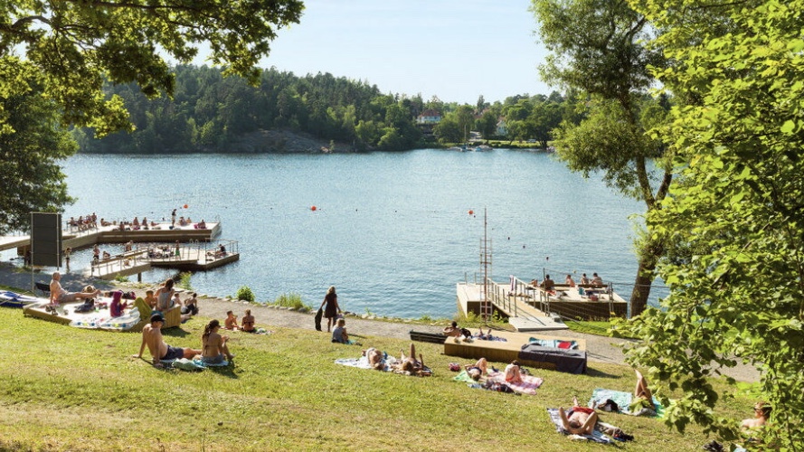 – Badrocksavstånd till badplats 3 min 🙂