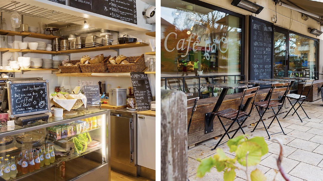 – Café, restauranger, pizzerior, butiker 3min