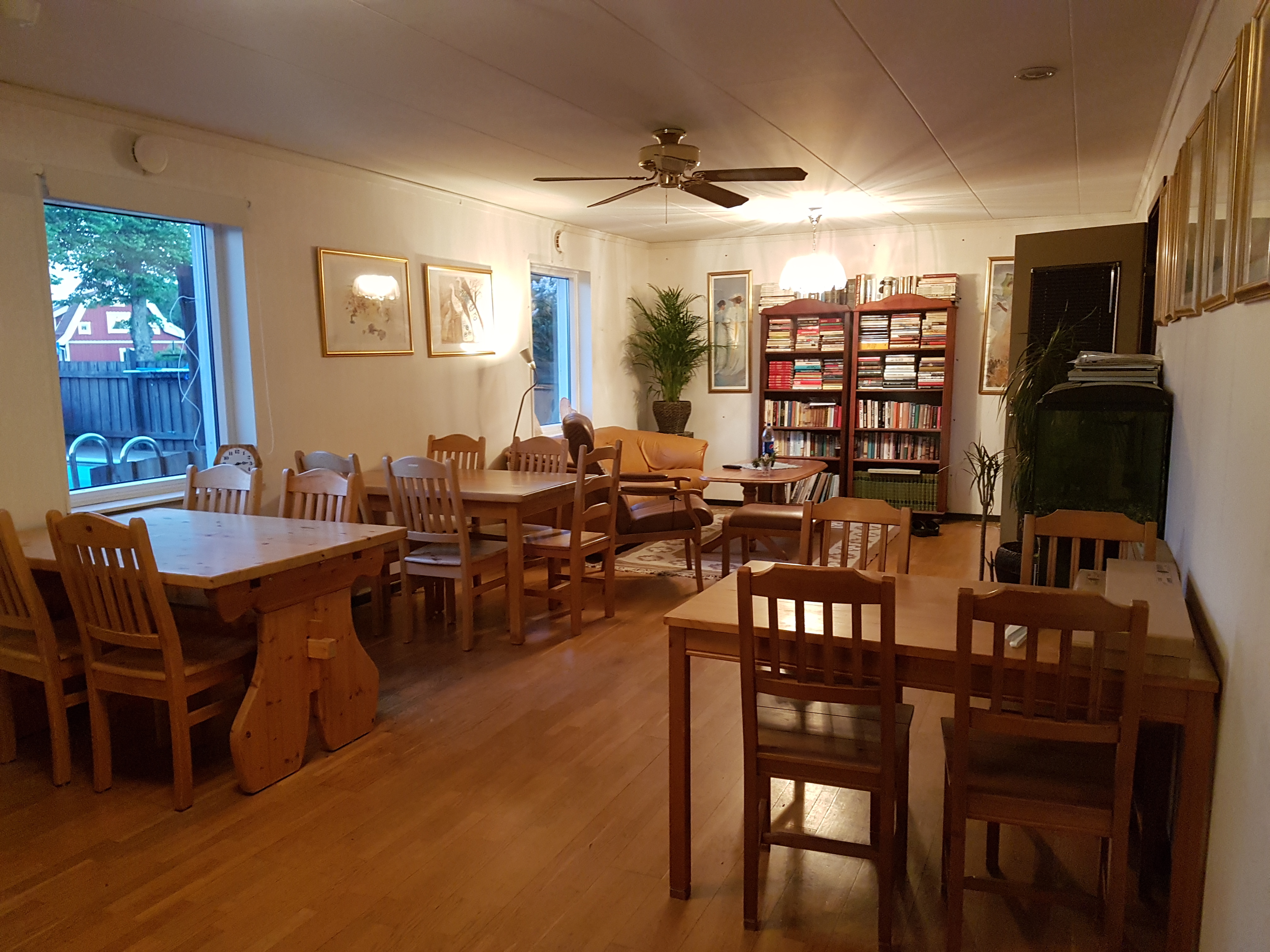 Gemensamma badrum 5 st ( 3 rum delar på varje badrum), stor matsal , Stort