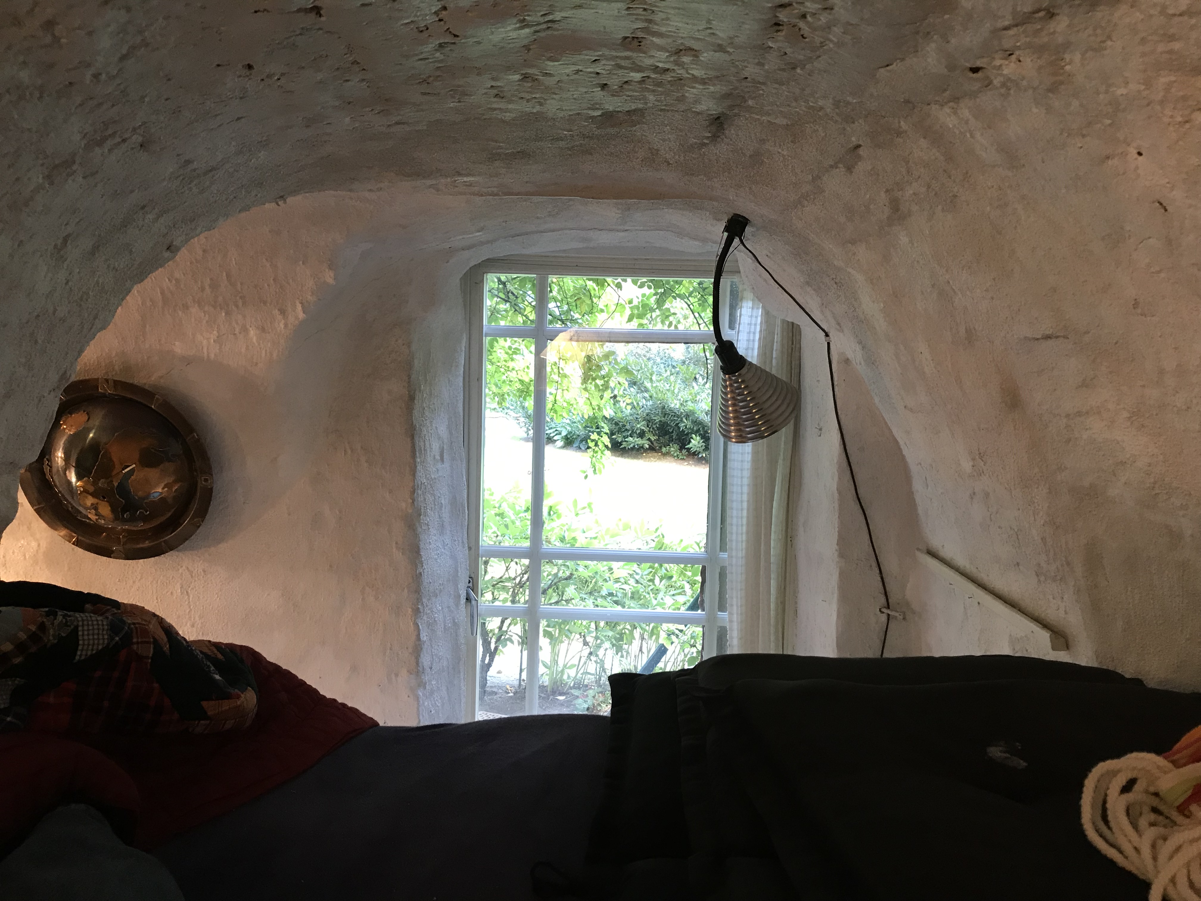 I lokalen finns förutom en arbetsplats även en köksdel, en representativ liten kaffehörna med en sittgrupp och fungerande öppen spis med installerad gasolbrasa, ett badrum och en uteplats. Här finns även en enklare 140-säng inredd ovanpå den medeltida bakugnen, vilket ger en originell möjlighet till trivsamt boende. Inredningen är modern, här finns snabb internetuppkoppling, air-condition, telefon med obegränsat antal samtal inom Sverige, exklusivt möblerat, sängplats, litet klädskåp, toalett, dusch, badkar och liten tvättmaskin samt ett fungerande piano.