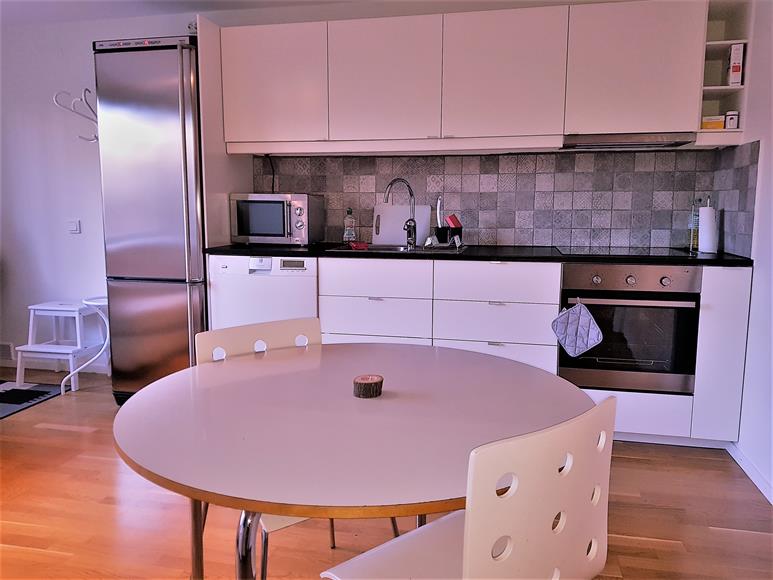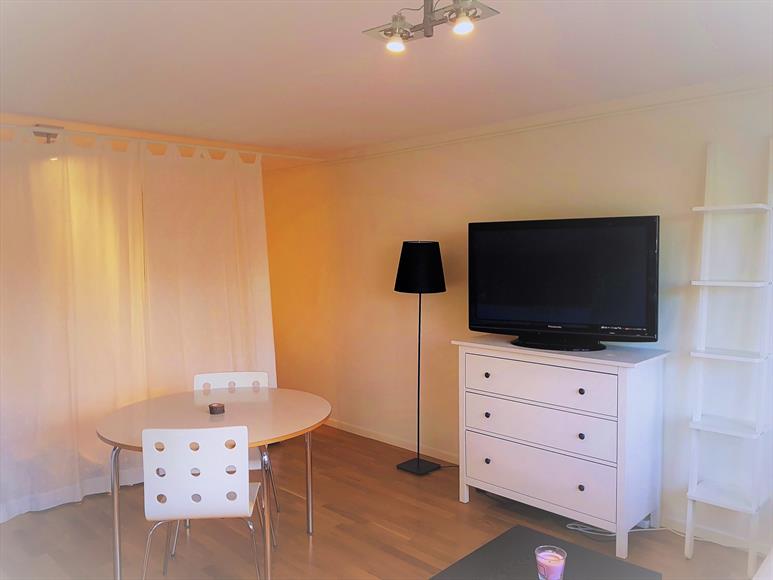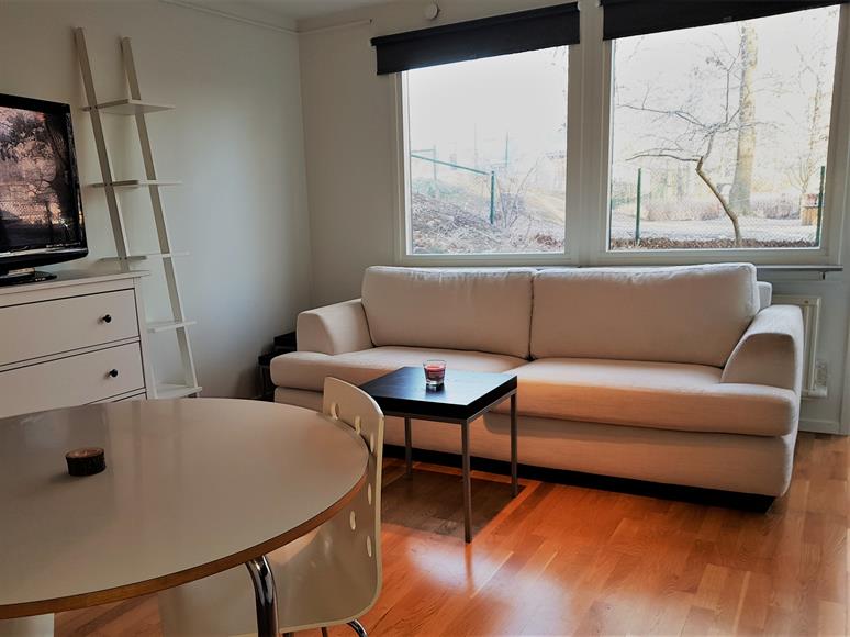 Vår kära hyresgäst flyttar efter 2 år och vi söker nu en ny skötsam gäst.Nyrenoverad och komplett lägenhet med mysig uteplats, stenkast från Segeltorp centrum, gångavstånd till Fruängen t-bana.Lägenheten är möblerad med fin smak/design och har ett fullt utrustat kök.Öppen planlösning med kök/vardagsrum (soffa, tv+chromecast) och avdelat sovplats med en bekväm 120 säng.Kök med rostfri kyl/frys, diskmaskin, induktionshäll, köksfläkt, micro- och varmluftsugn.Badrum i fin stil med spotlights, golvvärme, handdukstork och tvättmaskin.Klädkammare/walk in closet med bra förvaringsmöjligheter.Egen möblerad uteplats för 4-6 pers, utsikt mot grönska/park.Parkering för 1 bil.Utmärkta bussförbindelser, med generösa avgångar, runt hörnet.Total restid till centrala Stockholm (T-centralen) är mindre än 30 minuter.Promenadväg till Kungens kurva shoppingcenter, med bl.a. IKEA, shoppinggalleria och Heron City med biograf etc.Lägenheten uthyres till 1 person (djur- och rökfri).