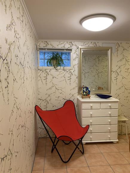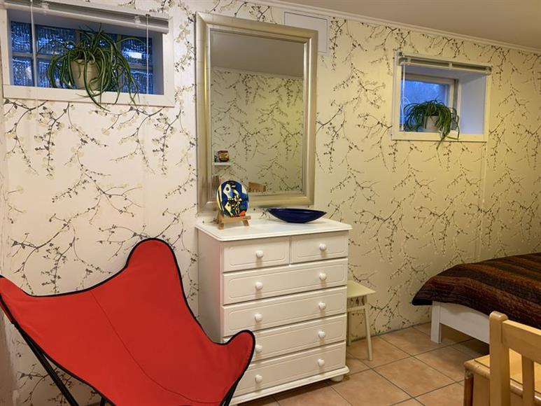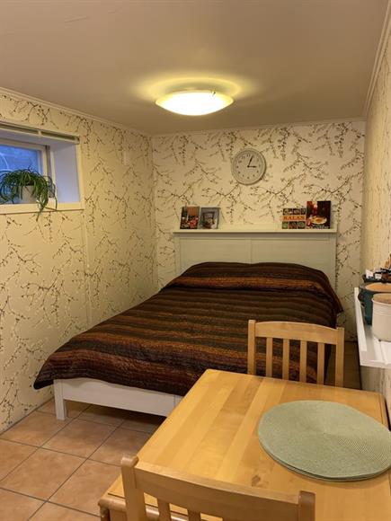 Vi söker någon lugn och ordningsam person som behöver ett övernattningsrum. Icke rökare, inga djur. Det går bra att hyra per dag eller längre tid.Vi har ett nyrenoverat rum på 15 kvm i ett lugnt villa område. Huset har en fin uteplats (altan och trädgård) och ligger nära både strand och naturreservat.Du får ditt eget badrum med dusch, pentry utrustat med mikrovågsugn, kaffebryggare, vattenkokare samt kyl och frys och tillgång till tvättstugan. Du får din egen ingång.Gratis parkering finns alltid mitt emot huset. Kommunikationen fungerar perfekt. Med buss 807 åker man till stan på 30 minuter.Bara 200 m från vår hus ligger en livsmedelsbutik Coop. Det finns tre olika pizzerior som ligger cirka 300 m från vårt hem ( La Carda, Mias Pizza, Vendelsö Pizza) och en Thai Wok och Sushi samt restaurang Vendelsö kök och Bar, där man kan äta goda rätter, både till köttälskare och till fiskälskare.Brandbergen Centrum , är ett litet köpcentrum, dit kan du promenera 20 min eller åka buss ( bara 3 busshållplatser) Där finner du ICA supermarket, apotek, optik, post, ATM, frisör och annat.Haninge Centrum är ett stort köpcentrum som ligger 6 busshållplatser bort.
