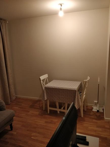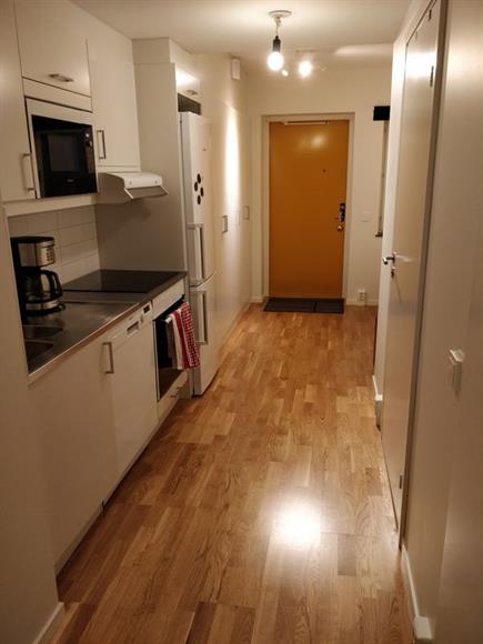 Mysig lägenhet, nyproduktion. Passar en eller två personer.Lägenheten är i stort sett ny då jag bott hos min pojkvän under den tid jag haft lägenheten.Gångavstånd till Huddinge Centrum där det finns ett stort antal butiker, bussar och pendeltåg. Stockholms City nås på 16 minuter med pendeltåg.Möblerad, säng 120cm (ny), soffa (ny), matbord med två stolar, tv, internet, telia kanalpaket.Stor diskmaskin och stor tvättmaskin med torktumlare i lägenheten.Inglasad balkong, 5 m^2. Tillgång till stor takterass.Dammsugare, kastruller och bestick finns ej i lägenheten.Förrådet till lägenheten hyres ej ut.Söker en eller två hyresgäster som kommer ta god hand om lägenheten.Önskar en rökfri hyresgäst, inga husdjur tillåtna.