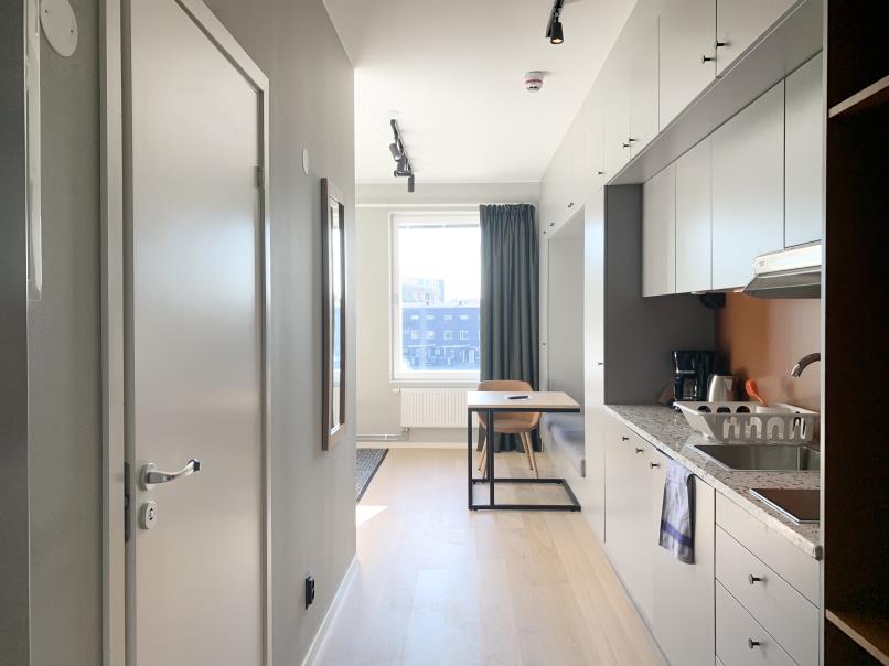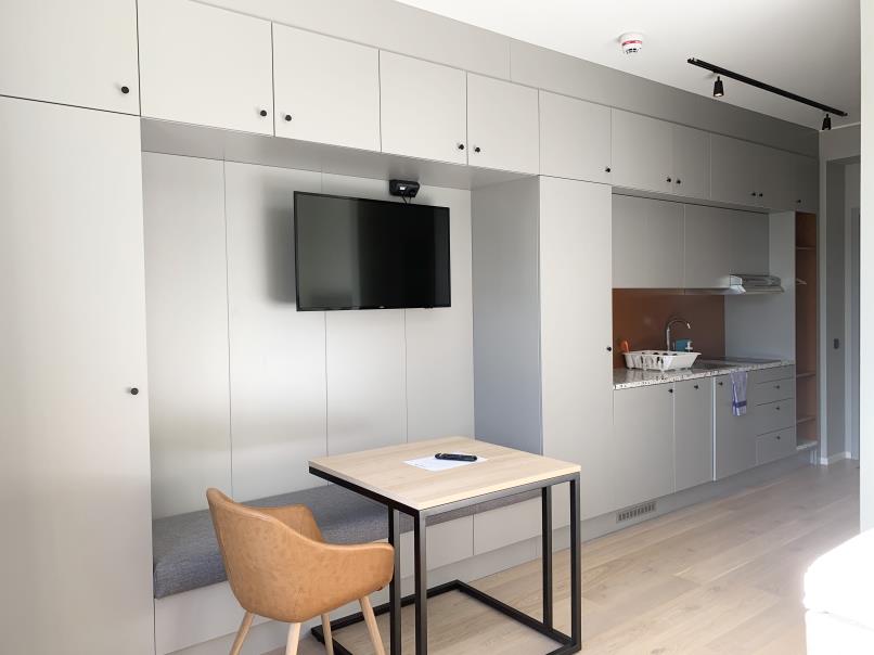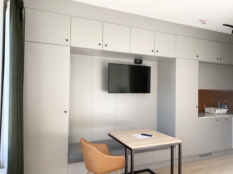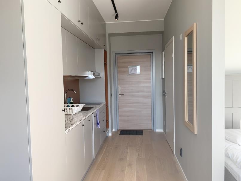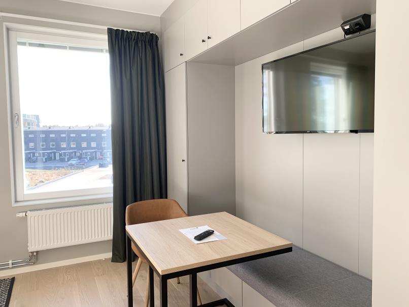 This fully furnished and equipped studio apartment is available for rent in Täby, a suburb of Stockholm called Arninge. The apartment is located in a newly built area with very good access to Täby city center or Arninge center by public transportation. Also, there is a reception in the building, as well as a gym and restaurant in the same building for a very convenient life.
