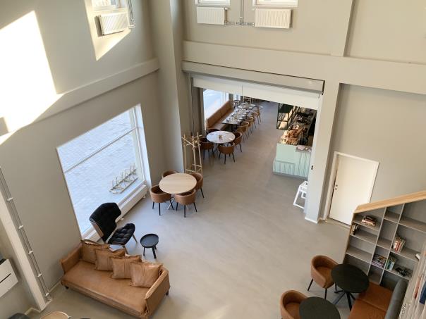 The living room consists of a comfortable couch, a coffee table, a dining table and a 32-inch smart TV from Philips with Chromecast possibility. The dining table is suitable for home office work or a small gathering with friends and family.