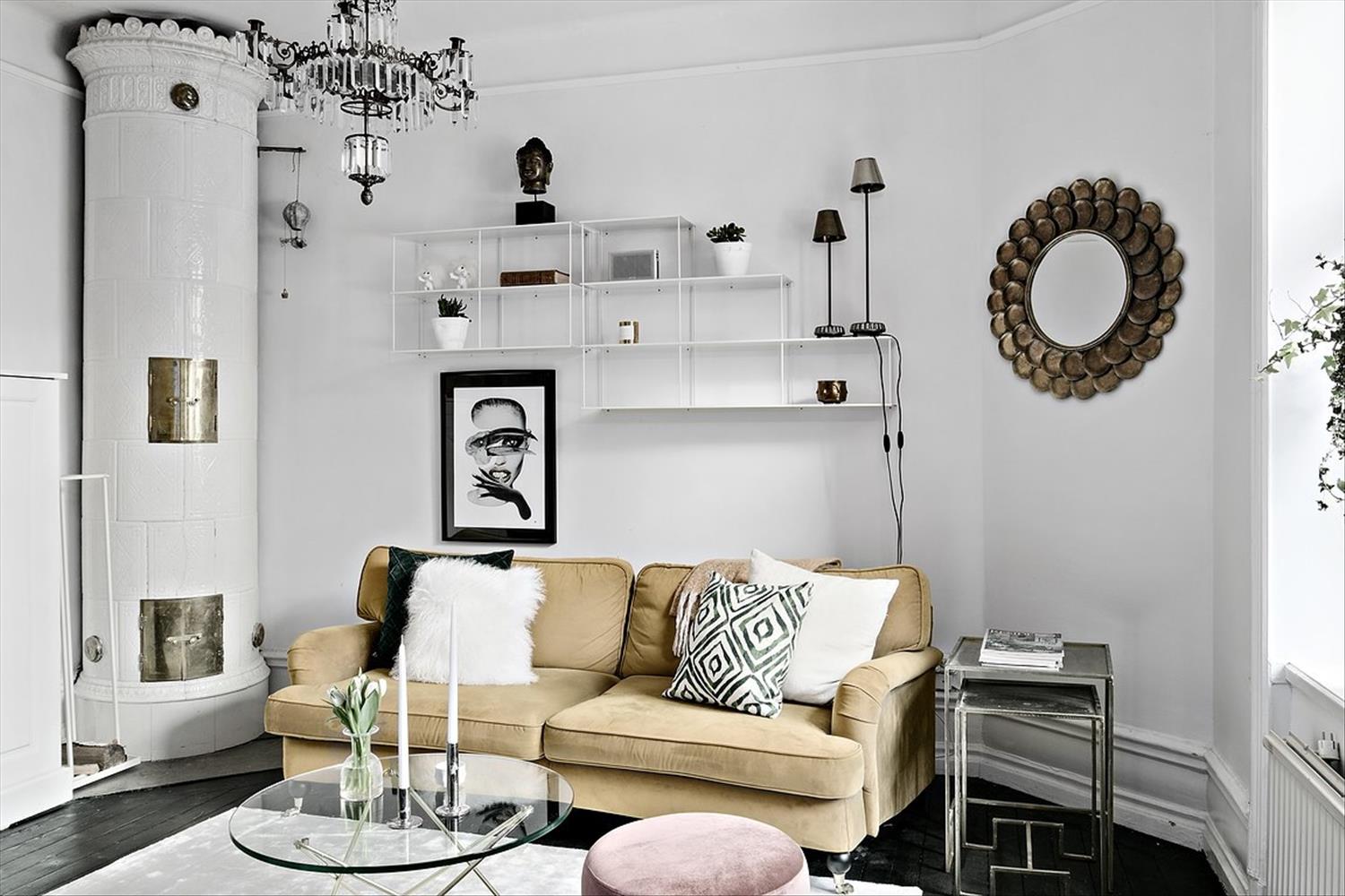 Lägenheten är en 1a på 34 kvadrat med ett stort kök, skafferi och vardagsrum. Lägenheten har en mysig kakelugn i vardagsrummet, perfekt på vintern.