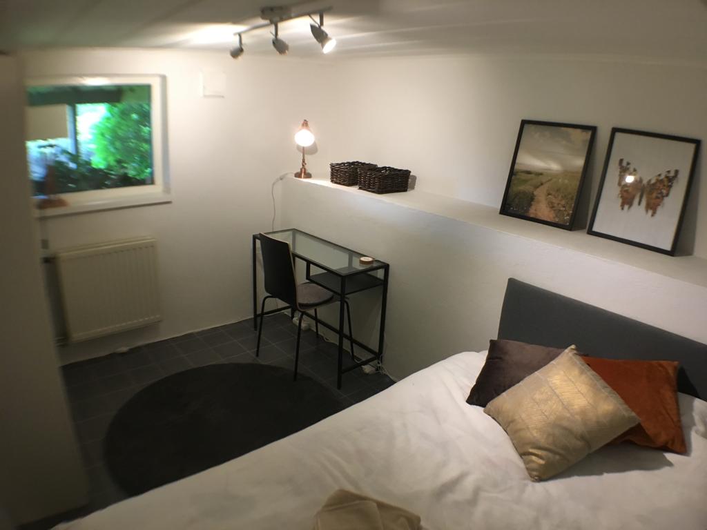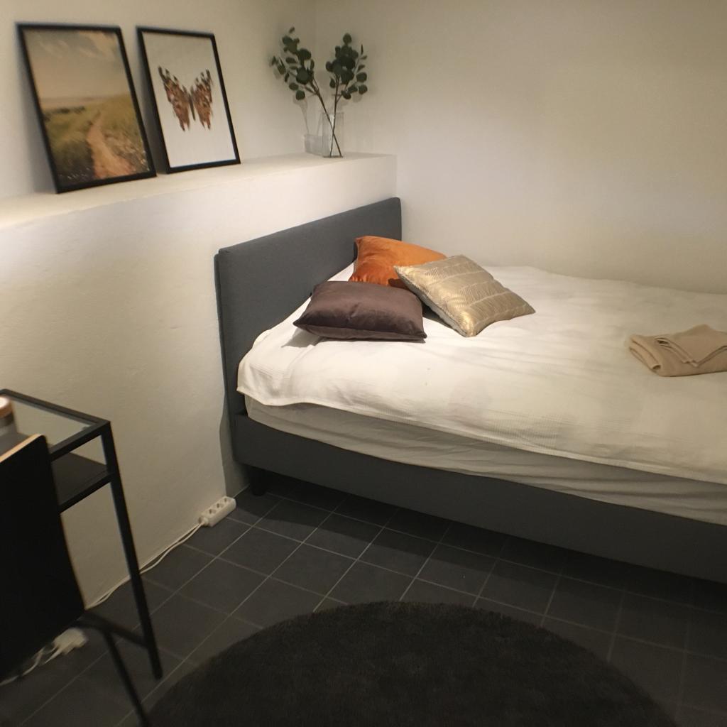 Välkommen till ett rum med egen ingång i ett lugnt område i östra Göteborg. Rummet ligger i källaren till min och min sambos hus och är fullt möblerad och har tillhörande badrum med badkar och kombinerad tvättmaskin/torktumlare. Regelrätt kök saknas men det finns ett utrymme med bänkskiva, kyl/frys, mikrovågsugn, värmeplatta och köksutrustning. Stekning är dock inte möjligt då det saknas fläkt.