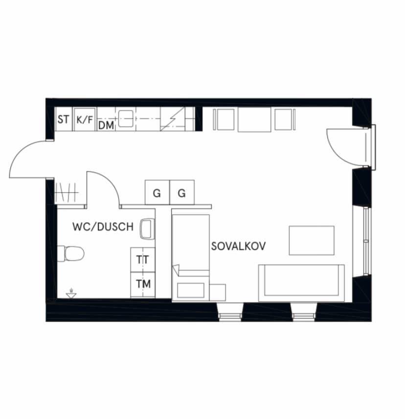 Lägenheten är 36 kvadratmeter stor och är utrustad med diskmaskin, tvättmaskin och torktumlare. Utöver det finns även en fransk balkong.