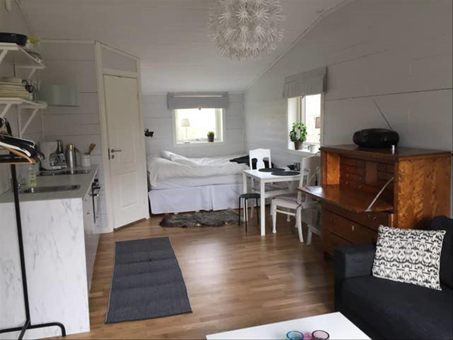 Liten lägenhet på 27 kvm uthyres i Norrviken i Sollentuna. Det är ett litet hus som ligger separat i vår villaträdgård. 10 minuters promenad till pendeltåget, sedan 20 minuters tågresa till Stockholm C. Uthyres endast mellan 1 juni och 30 September. Fullt utrustat kök med diskmaskin, kaffebryggare, ugn/Micro. Fiberinternet, Netflix, el, värme och vatten ingår i hyran. Hyran är 9000/månad.