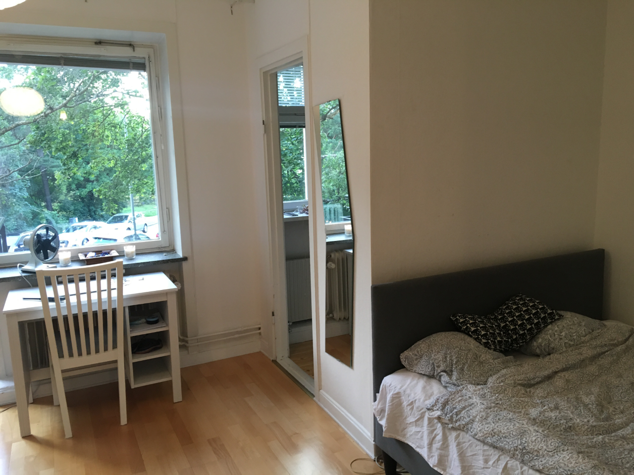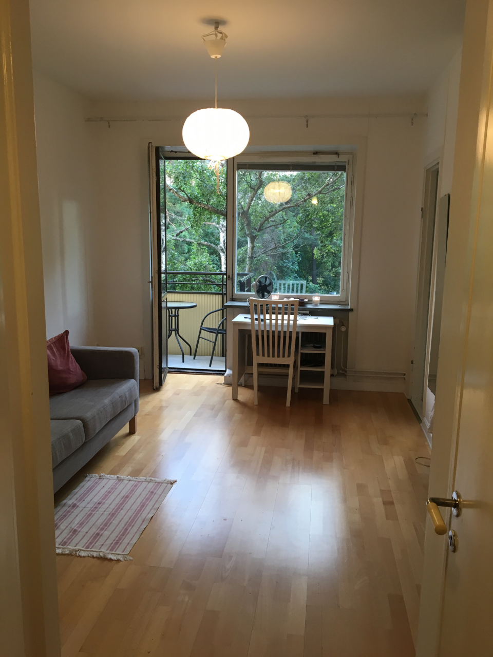 A small and charming apartment located at just a two minute walk from the subway station Skärmarbrink. There you can take two different green lines to the city center. By car it takes 8 minutes to central Stockholm. Additionally, the apartment is close to several shopping areas, such as Globen Shopping Mall, which is just 5 minutes walking distance.