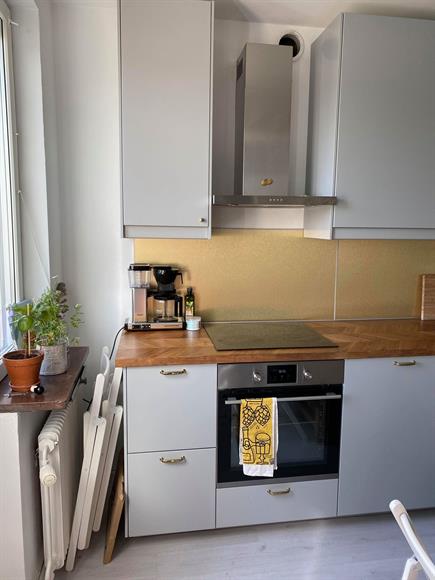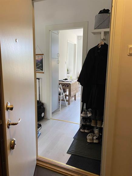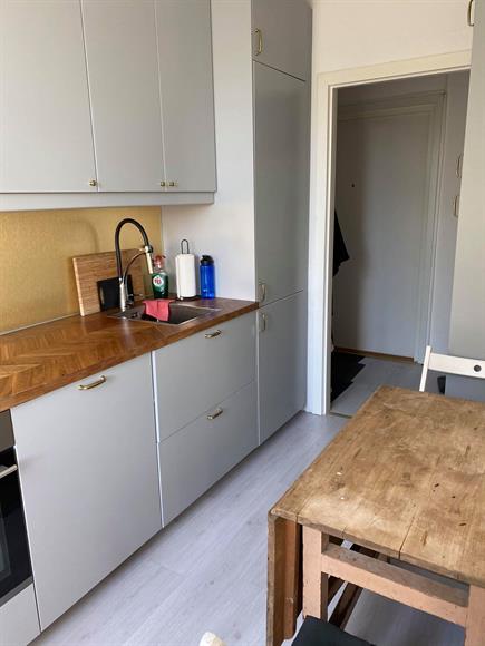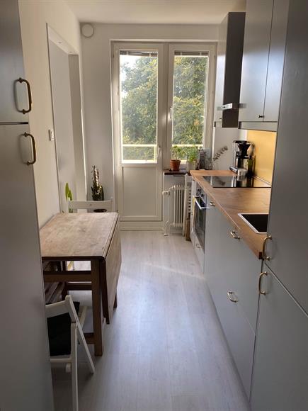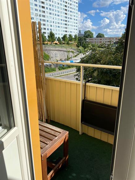 Fin nyrenoverad lägenhet, 1,5a 35 kvm, högst upp med balkong i funkishus. Vasalund/Solna, två minuter till Solna station (pendeltåg till Odenplan tar tre min) och fem minuter till Mall of Scandinavia. Halvt möblerad (fullutrustat kök med matbord och stolar + säng). El, värme, vatten, bredband ingår.Finns parkeringsplatser runt omkring, men ingen boendeparkering.