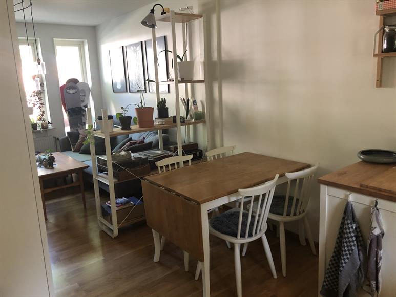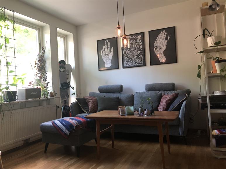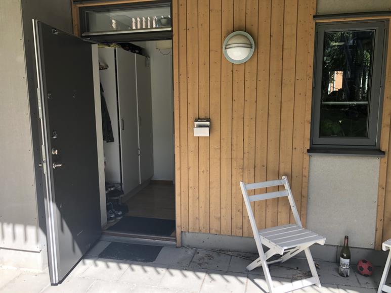Fin 1:a med uteplats i söderläge mot skogen, 7min gång till Skarpnäcks tunnelbanestation. Nära till fritidsområden, natur och matbutiker.