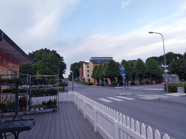 apotek. Cykelbana till stan och löpspår i skogen.