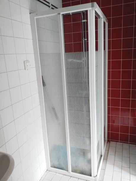 Lägenheten har badrum med dusch och toalett,
