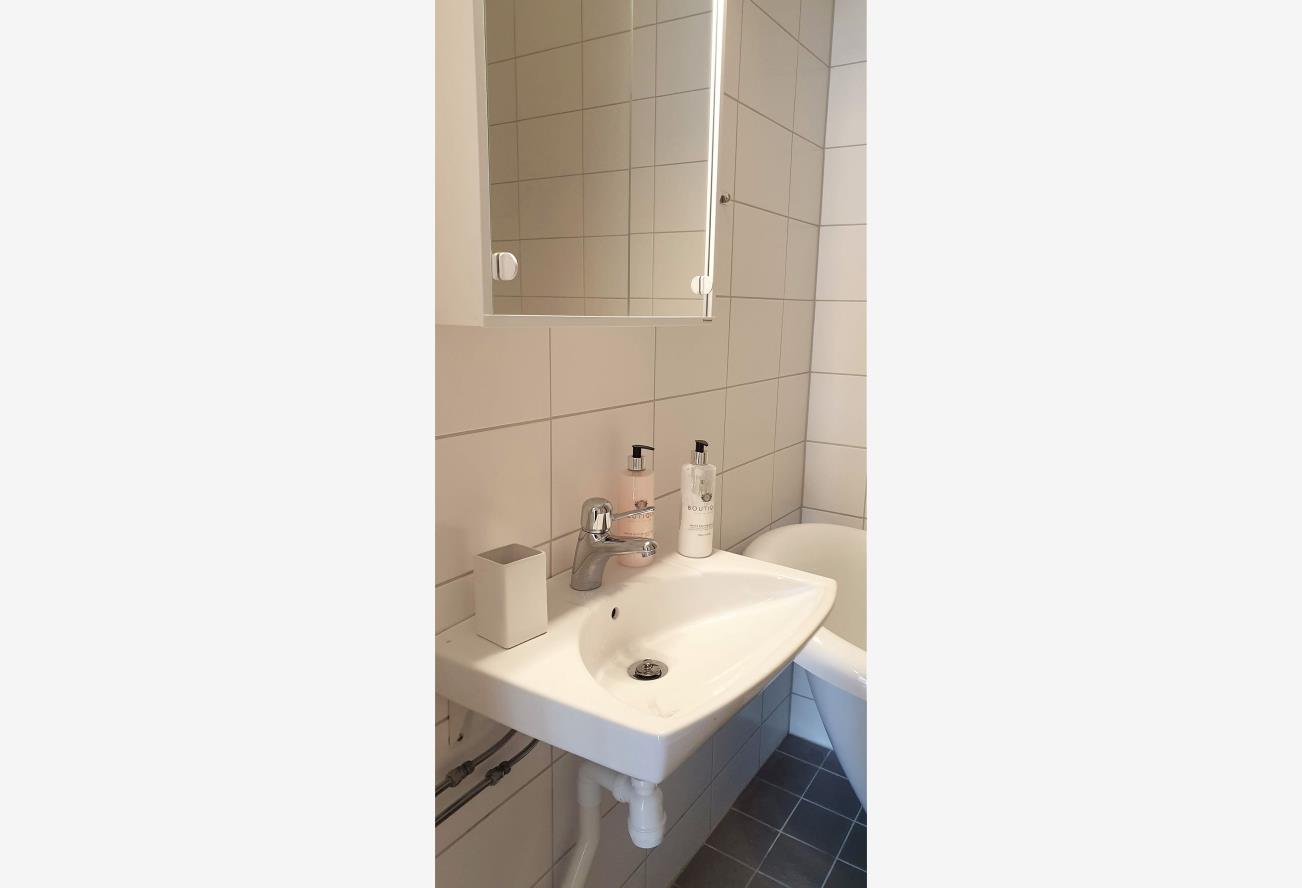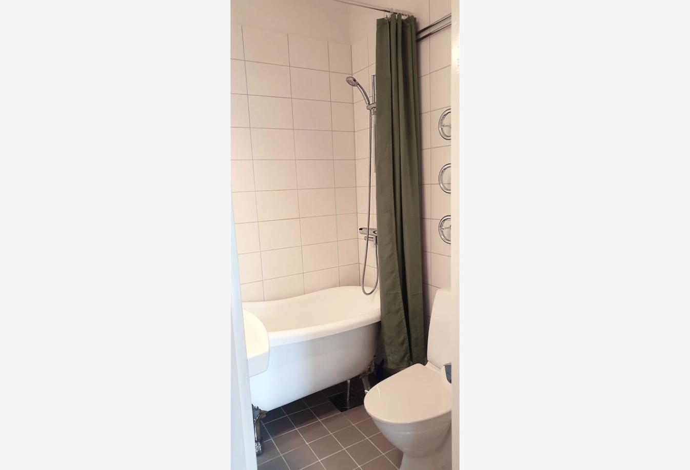I det helkaklade badrummet finns badkar. Tvättstuga finns på bottenvåningen.