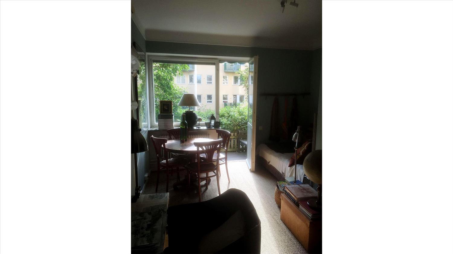 Väl disponerad och noggrant möblerad 1:a på Gärdet ett par gator ovanför Tessinparken. Lägenheten är på 24 kvm med en egen uteplats på 10 kvm med en häck framför som skyddar mot insyn. Fältöversten med butiker ligger på ca 10 minuters gångavstånd.