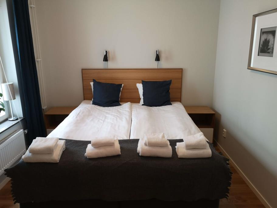 The bedroom consists of two single beds or a queen-size bed, with fresh linens, sheets, towels, and pillow. Everything you need basically.