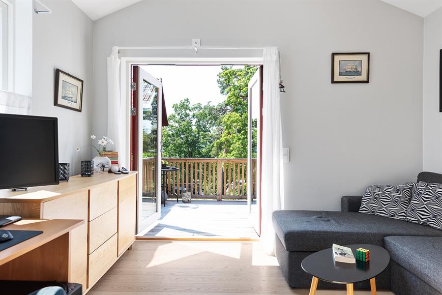 Ett trevligt litet attefallshus med en stor altan med solyta från tidig dag ända tills solen lägger sig. Det ligger nära till det gröna och gillar man att odla växter, kryddor eller mat finns det yta för det.Det finns en säng på loftet men om man tycker att det inte är lämpligt så finns det även möjligheten att fixa en säng där soffan står.Busshållsplats finns inom ca 500m och tågstation ca 1km.