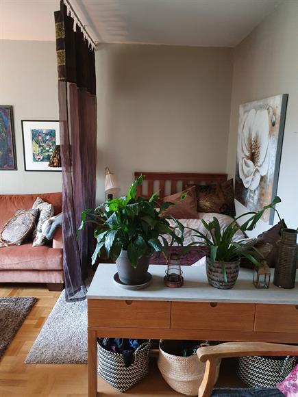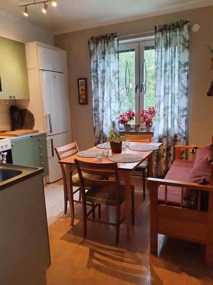 Trevlig etta med avskild sovdel i lugnt bostadsområde med närhet till Mälaren med badplats och strandpromenad (5 min till fots). Rymligt kök med full utrustning och stor trevlig balkong i söderläge. Närhet till centrala delarna av Västerås och tågstation, 10 min på cykel (gång-cykelbana)