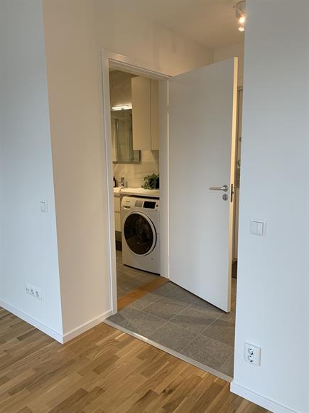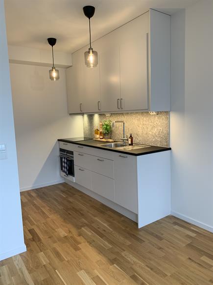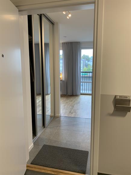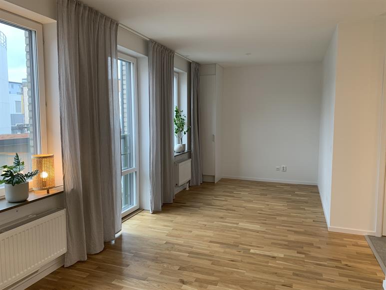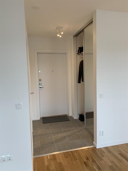 Nyproducerad lägenhet september 2020. Ett rum och kök, 32 kvm, med fransk balkong.Generellt vitmålade väggar, ekparkett. Hall – Skjutdörrsgarderob och klinkergolv. Kök – vita skåpluckor, stänkskydd i terrazzo och svart bänkskiva. Rostfria vitvaror – kyl/frys, spishäll, kombinerad ugn och micro samt diskmaskin. Bad – beige kakel och klinker. Kommod, spegel, duschdörrar i glas. Vitt överskåp och bänkskiva,. Kombinerad tvättmaskin och torktumlareNärhet till både grönområde och vatten. 150 m till Dalénumkajen med strandpromenad och restauranger.Kommunikation:5 min till Lidingöbana – Ropsten 12 min6 min till SL-Pendelbåt – Nacka strand 12 min