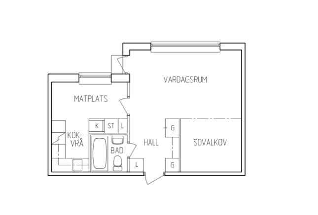 1 rok, 41kvm m stor sovalkov (det står en 180cm bred säng i alkoven idagsläget), lägenheten är belägen på bottenplan i ett
