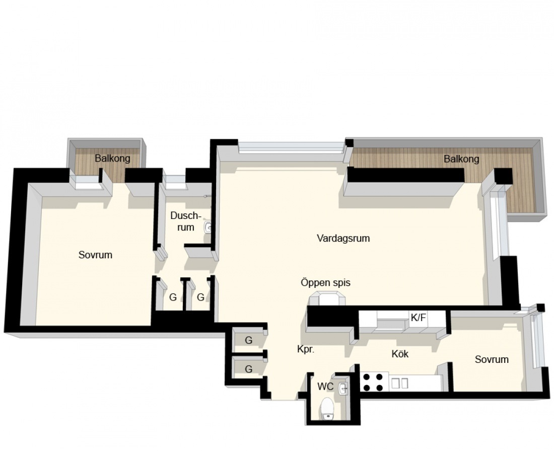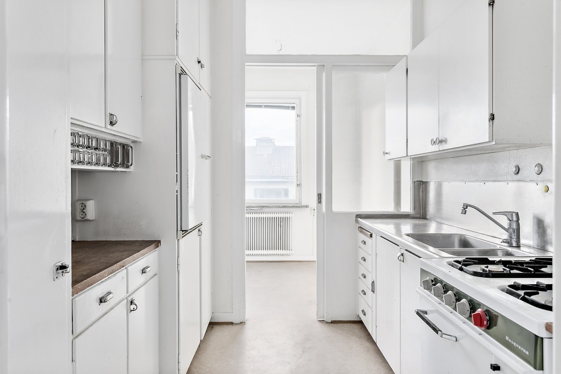 – Väggar och tak har till stora delar målats vita (jan 2018) efter att bilderna togs. Även ny kombinerad kyl/frys samt ny elspis (ej på bild).