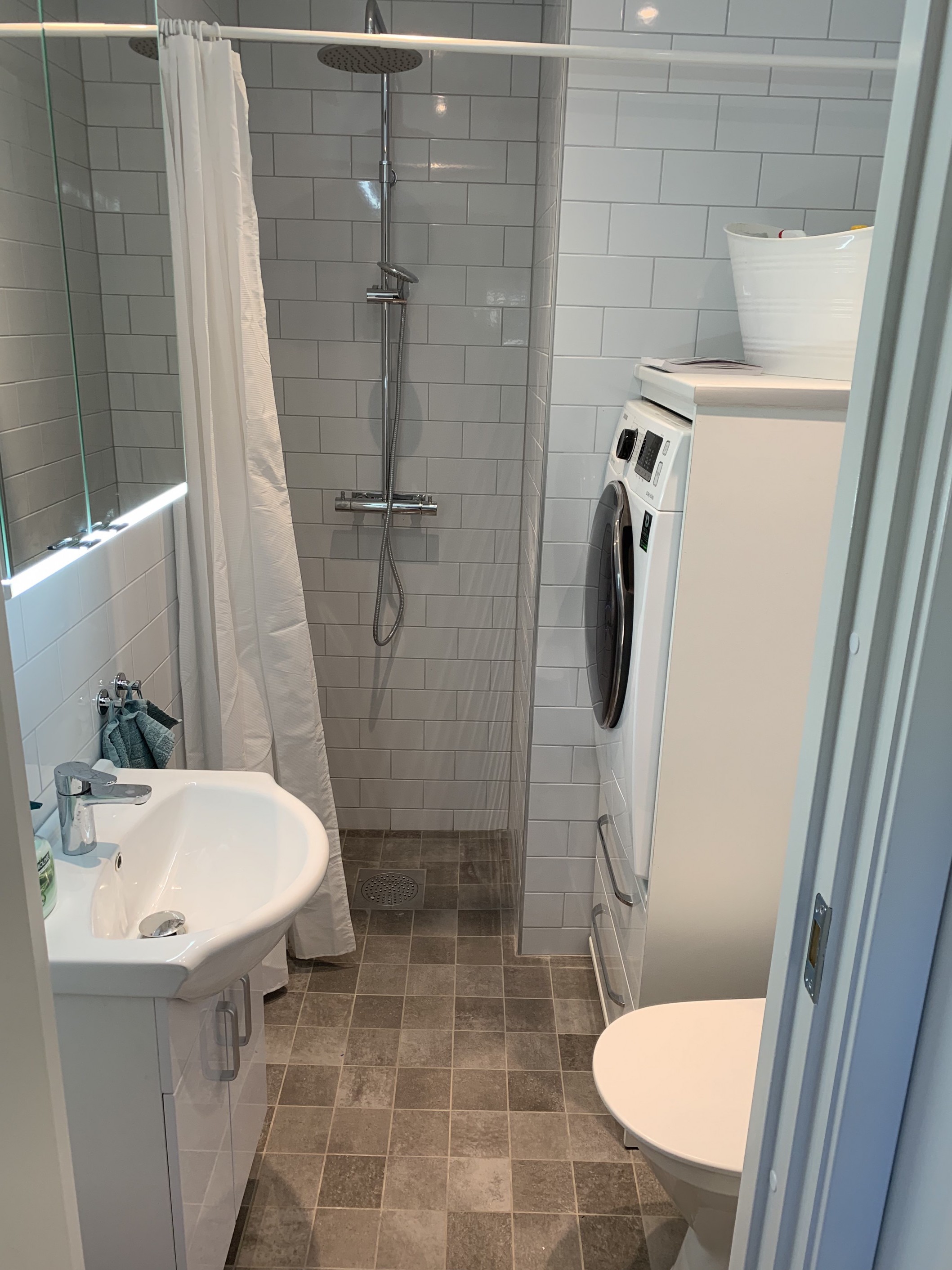 Stort och fullutrustat kök och fräscht badrum med tvätt/tork.