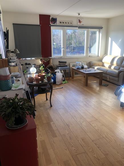 Rymlig tvåa med sjöutsikt mitt i rönninge centrum, 1 minuts gång till pendeln. Ljus och härlig lägenhet.