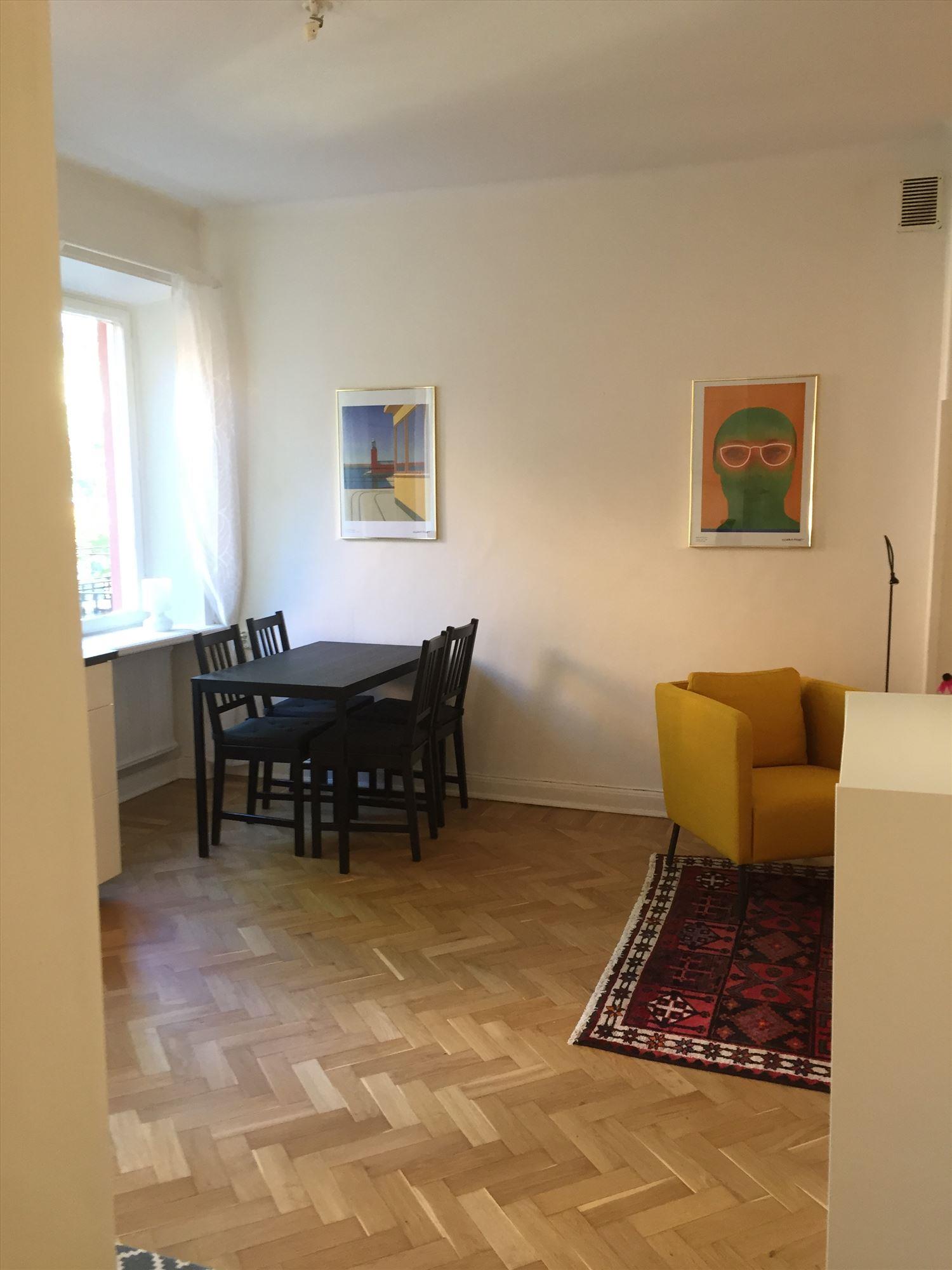 Ljus, nyrenoverad mycket fräsch liten 2:a i hjärtat av Hornstull.Lindvallsgatan är belägen på söders mest populära områden med skön mix av stadsliv och grönska samt närhet till Stockholms alla hörn. Lägenheten ligger på en höjd i ett mycket lugnt område. 3 fönster i västerläge mot grönskande innergård. Mycket nära kommunikationer, buss och tunnelbana. Utbudet av affärer, caféer och restauranger är stort. Här finns även streetmarknad och ett myllrande folkliv. Fantastiska naturområden och promenadvägar i området.I badrummet dusch och tvättmaskin. ( finns stor nyrenoverad tvättstuga på bottenvåningen i huset). I sovrummet en 120cm bred säng. Fullt möblerad med snabb induktionshäll, kaffebryggare, porslin och köksutrustning, bäddsoffa(extrasäng). Djur och rökfri. Alla möbler helt nya.Berätta gärna lite om dig själv! Jag vill hyra ut lägenheten minst ett år, gärna förlängning därefter.Närmaste station/hållplats: Hornstull