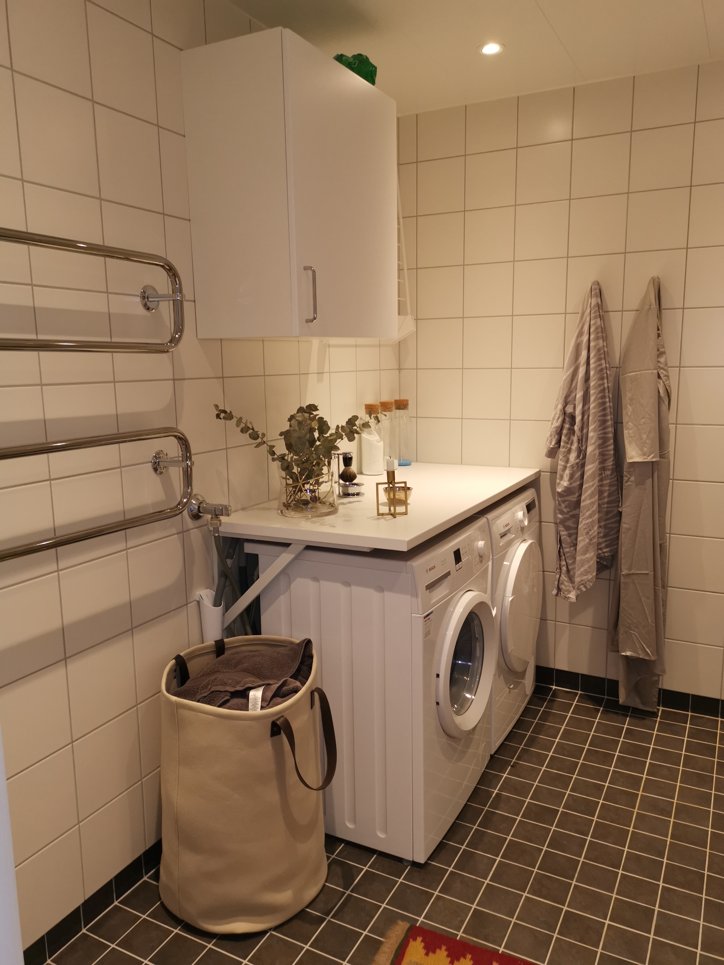 Det finns gott om förvarning med garderob från golv till tak. Behöver man ytterligare förvaring finns förråd i direkt anslutning till lägenheten.