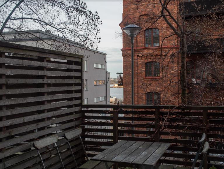 Rymlig två i vackra Saltsjöqvarn med stor terass på 40 m2. Öppen planlösning, högt i tak och sjöglimt.Du når kajen och Saltsjön med hiss där pendelbåten trafikerar Djurgården och Nybroviken.Buss 53 tar dig till Slussen och Stockholm City, gångavstånd till Nacka-Värmdöbussarna ochtvärbanan. Lägenheten ligger intill Elite Marina Hotell med restaurang och bar samt till SturebadetMarina Tower med möjlighet till gym och spa med hamam.Endast max 2 personer, inga barn och husdjur.