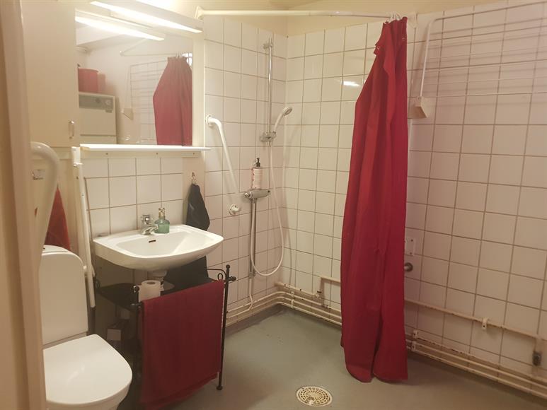 Stor tvåa med uteplats både framsida och baksida. Framsida med morgonsol och trädäck. Baksida med kvällssol, gräsmatta och möblerad altan.Inga trappsteg och låga trösklar i lägenheten. Elektrisk dörröppnare finns, men inte i bruk.Äldre kök, men ny spis med induktionshäll.Stort badrum med tvättmaskin och torkställ Tyst och lugnt område. Främst äldre. Privat lekplats för området finns. I området finns de 22 lägenheten i varierande storlekar.