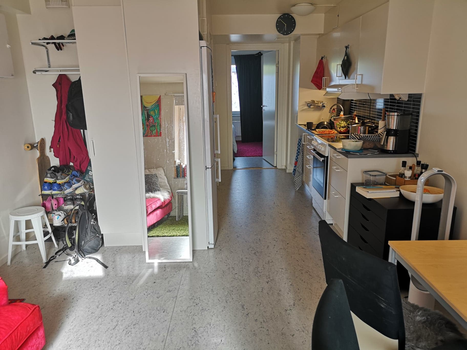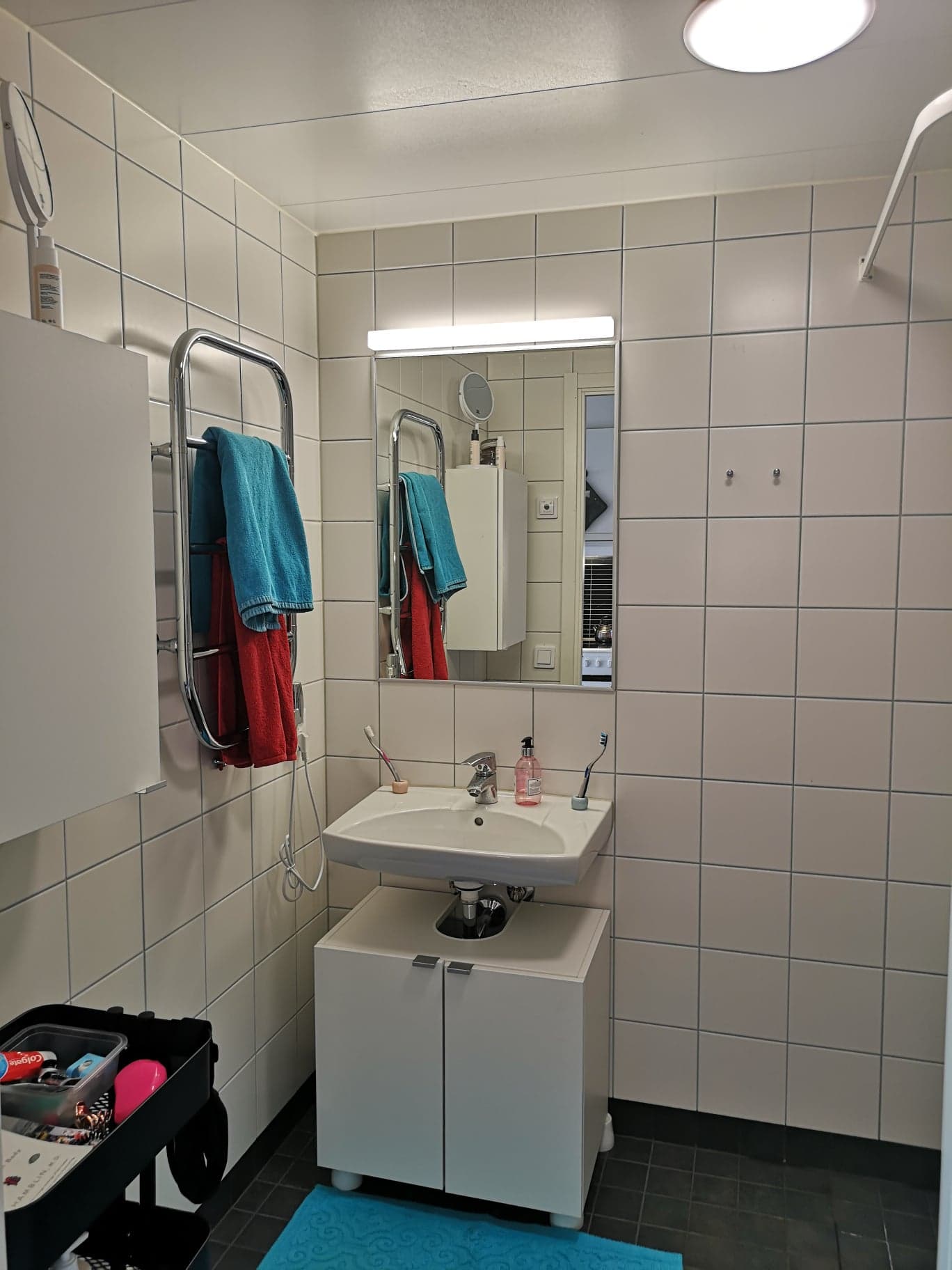 We are renting out our 2-room apartment in Solna from June 16 to July 31(or shorter periods). Our home is a modern two rooms apartment (built-in 2017), located on the ground floor in Solna (wheelchair accessible). Natural light enters it in the day, and it is provided with nice thick curtains for comfortable sleep. The bathroom is big and luxurious and the kitchen is fully equipped and has a modern design. We have a great king size bed in the bedroom and a cozy sofa in the living room.