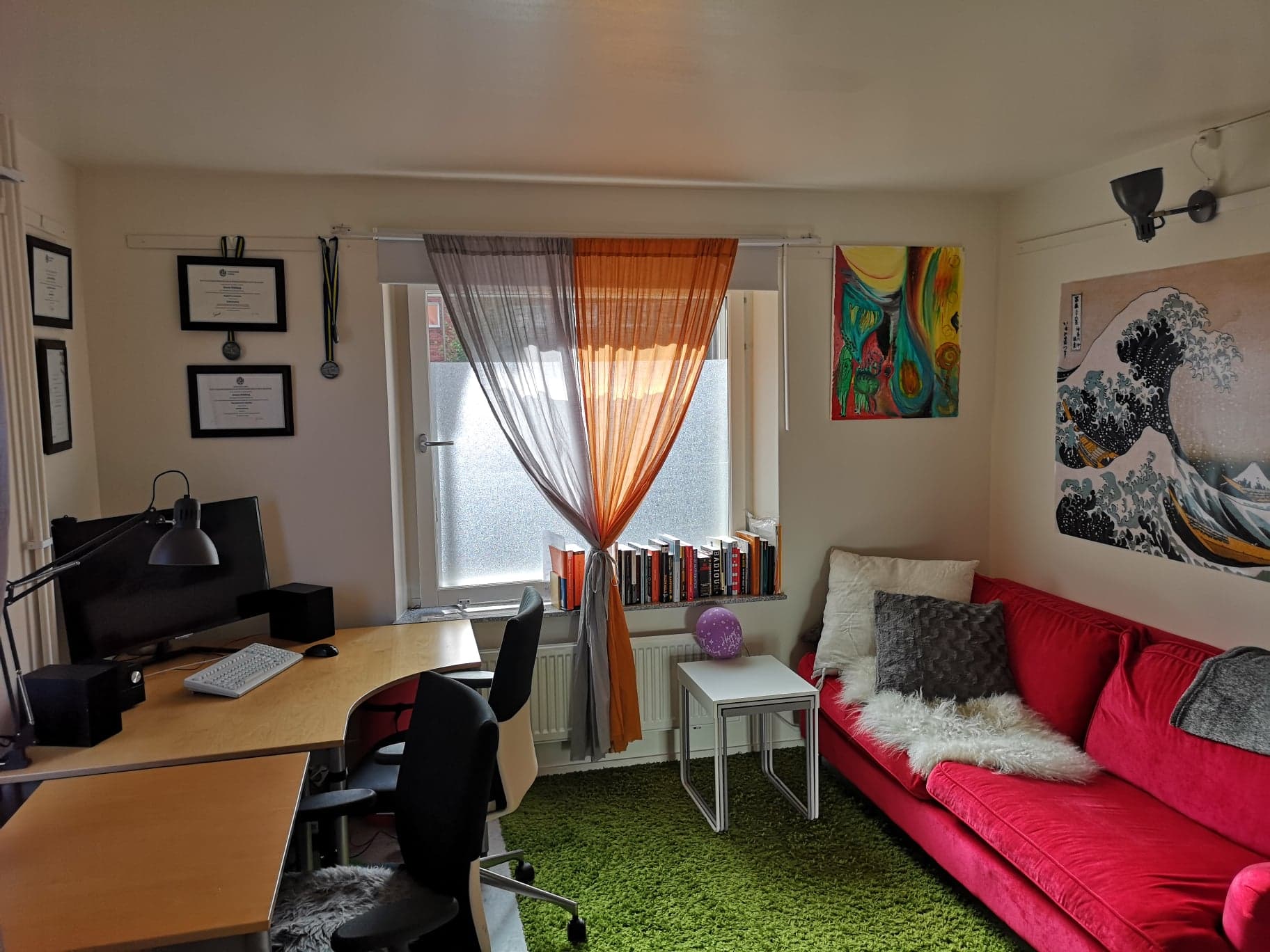 Our apartment is nearby the metro station Västra Skogen, 7 minutes away to Stockholm central station. Many supermarkets and restaurants are in the neighborhood, still, it is a quiet area to live in. In about one kilometer walk, you can find yourself by the water, where nice beaches, bars, and cafes are located.