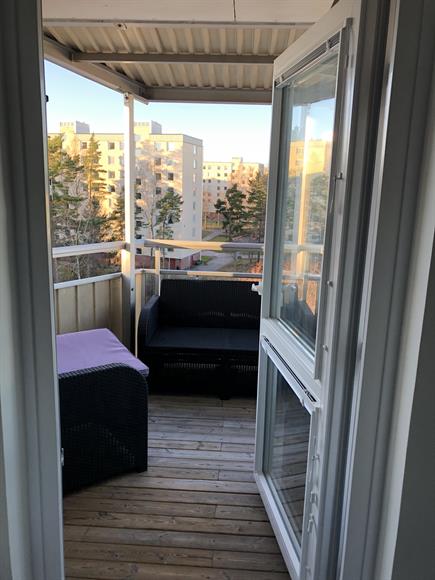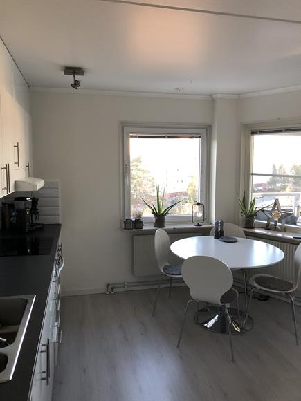 Ljus och fräsch tvårummare högst upp, 5 tr, hiss finns. Balkong i fritt läge med efm- och kvällssol. Kombinerad tvätt/torkmaskin och diskmaskin finns i lgh. Två stora garderober i sovrum. Nära till direktbuss som tar dig in till T-centralen på ca 20 min. Gångavstånd till Tyresö C. Möjlighet att hyra inhägnad p-plats i carport för en tilläggskostnad á 300kr/mån.