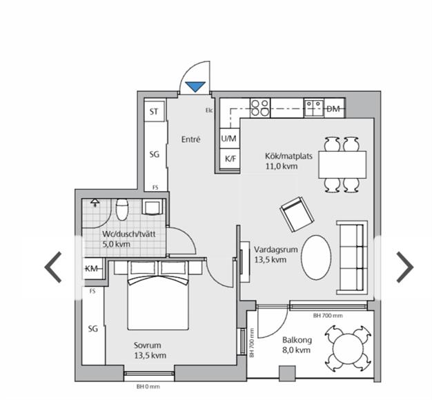 • 55 m2 2 rum