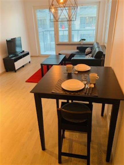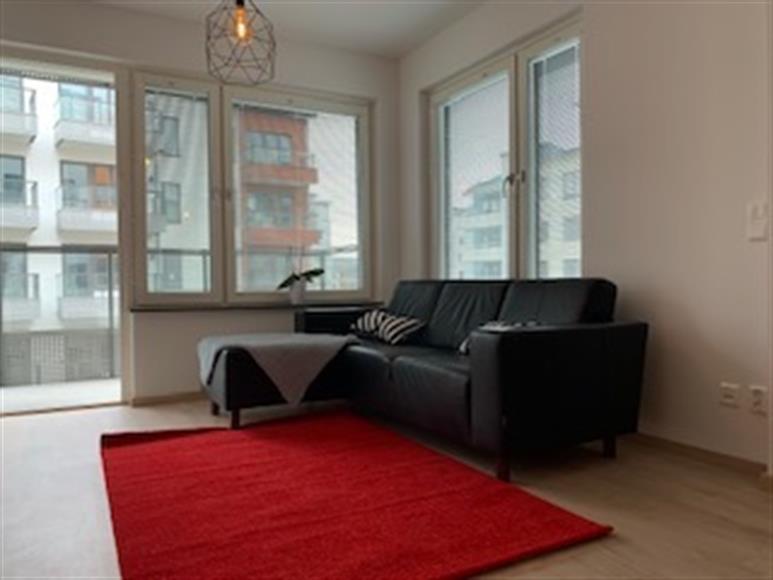 Helt ny fastighet HSB ingen har bott i lgh den var klar i september 2rum 41kvm med balkong. Fullt möblerad köksbord med plats för 2-4 pers, mindre skinnsoffa med divan, soffbord, dubbelsäng helt nyköpt med nya sängkläder, täcke och kuddar, utrustad med bas hushålls artiklar för 4 pers, dammsugare, strykgärn/bräda, kaffe/te kokare, kombo tvättmaskin torktumlare, tv, internet. Lgh ligger ett par minuters gångväg från Blåsut alt Sandsborg på grundlinjen nr18 där ett trevligt centrum med Ica, apotek, blomsteraffär, 2 Gym, bibliotek, simhall med gym, frisör, grill finns. T-bana till Centralen ca 10min. Grönområden runt knuten Nytorpsfältet med grattis utomhus bassänger samt utgym. Flertal restauranger inom ett par minuters gångväg samt Globen runt hörnet.