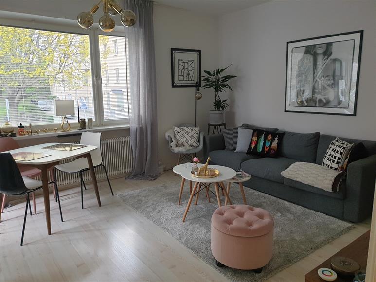 Jag hyr ut 2:a på 46 kvm i Solna, Gamla Råsunda. Nyrenoverad, högt i tak med bra ljusinsläpp hörnlägenhet.Lägenheten har utmärkt kommunikation med tunnelbana Solna C (5 min), tvärbanan (5 min), pendeln (10 min) samt bussar. Gångsavstånd till Mall of Scandinavia, restauranger, biografer, gym, Friends arena, Haga parken osv.Lägenheten är fullt möblerad i modern stil med bland annat dubbelsäng, 55" 4K TV, 3-sitssoffa m.m. så du bör inte ha större saker med dig. Det finns inga externa förvaringsmöjligheter såsom förrådsutrymme.Bredband, WIFI, TV-utbud, el, värme och vatten ingår i hyran.Lägenheten har nyrenoverat kök inkl. kökstillbehör. Även diskmaskin, spis och micro.Nybyggd walk-in closet.Värmegolv i badrummet.Personen jag söker skall vara rök- och djurdfri, mycket ordningsam med goda referenser från ev.tidigare hyresvärd och som kan uppvisa ekonomisk stabilitet.Hyres ut f.o.m 1 Juni, eller så fort hyresförening godtjänner er som andrahandshyreshäster.Hyresperiod: tillsvidare, börjar med 6 mån på prov.Lägenheten kan visas av mig personligen under v. 22. Tidigare visningstillfällen kan ordnas.
