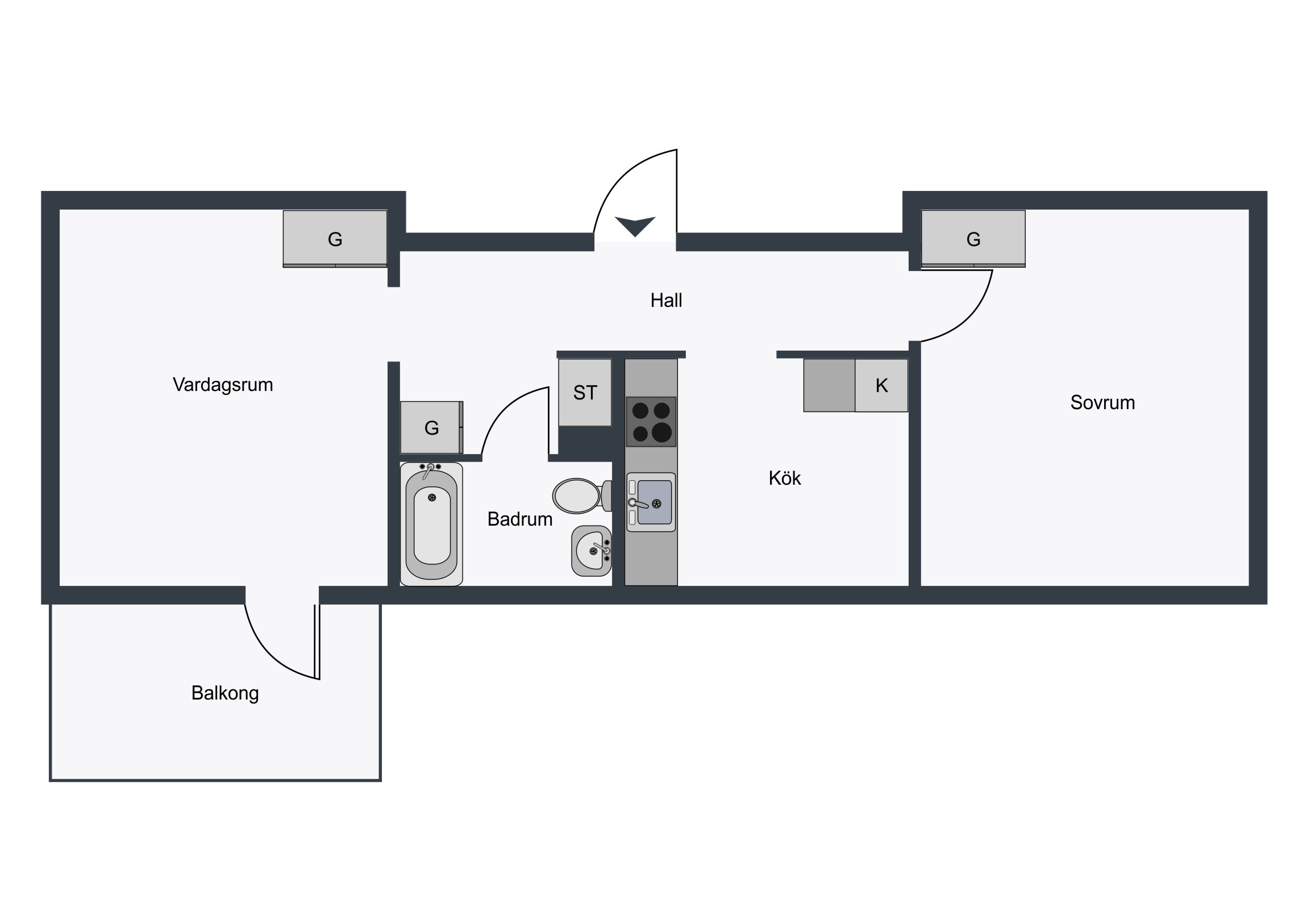 • 55 m2 2 rum