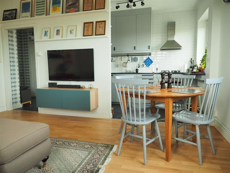 Välplanerad och nyrenoverad tvåa på Kungsklippan (Kungsholmen) med fantastisk balkong och utsikt över stan uthyres möblerad under ett år med möjlighet till förlängning.Lägenheten är på ca 47 kvadratmeter och helrenoverades 2018 med nytt kök och nya ytskikt. Den har öppen planlösning mellan vardagsrum och kök och många smarta förvaringslösningar vilket ger en rymlig känsla. Köket är utrustat med nya vitvaror inklusive diskmaskin samt en granitbänk i vinkel vilket ger generösa arbetsytor. I sovrummet finns en 160 cm säng, arbetshörna med höj- och sänkbart skrivbord samt förvaring i garderob och byråer. Badrummet har en kombinerad tvättmaskin och torktumlare som installerades 2020. Den stora balkongen är i söderläge och erbjuder utsikt över Stockholms takåsar. Med markis och infravärmare kan balkongen användas under stor del av året.I hyran ingår vatten, värme, internet, el och gas. Du som hyresgäst behöver ha egen hemförsäkring samt ska godkännas av bostadsrättsföreningen som hyresgäst.Lägenheten ligger precis vid nedgång till tunnelbana (Rådhuset) och cirka 10 minuters promenad från centralstationen. Nära till service både i City och på Kungsholmen med 15 minuters promenad till Fridhemsplan. Kungsklippan erbjuder förutom fantastisk utsikt över takåsarna i Stockholm en lugn atmosfär mitt i stan.