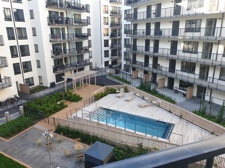 Nyproducerad tvåa i Solna. Nära till allt. Fin gemensam utomhuspool i gården. Gemensam takterass