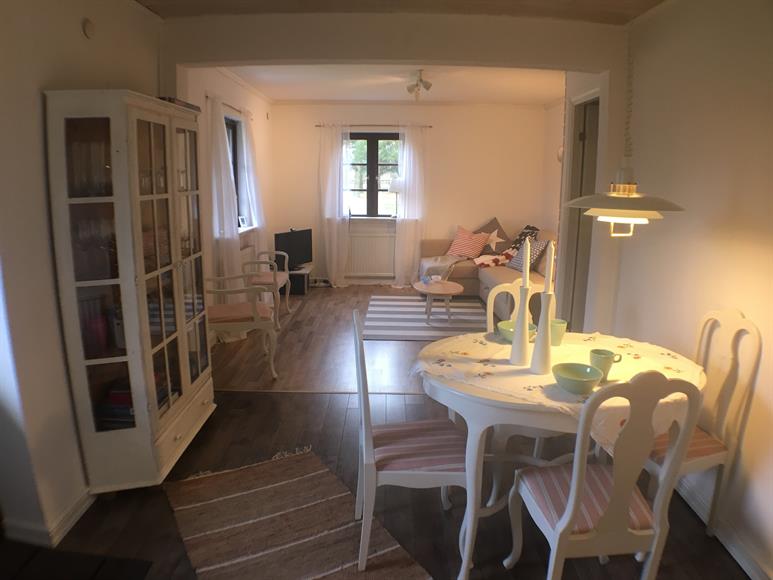 Fullt möblerad lägenhet i del av fastighet med egen ingång, privat möblerad uteplats med grill, fri tillgång till en relaxavdelning med IR-bastu, öppen spis och uppvärmt spabad. I närheten av badsjö, natur, vackra vandrings och cykelleder. Busshållplats 100 m från lägenheten.