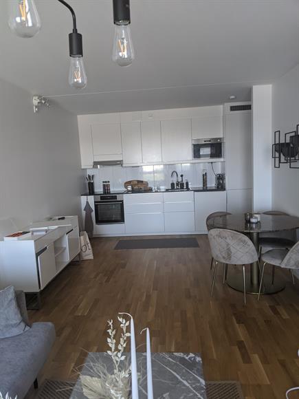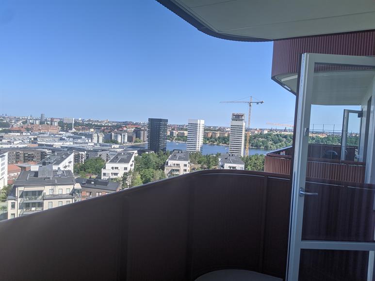 Rymlig tvåa med öppen planlösning på 15e våningen. Luftig och ljus. Makalös utsikt över Stockholm. Ändlösa kvällar med sol från 15.00 och vackra solnedgångar. Nybyggeri från 2018, endast bosatt av ägaren i ett antal månader. Inbyggd garderob med skjutdörrar i sovrummet. Bra med förvaring i övrigt. Tyst och fint område. Gång avstånd från Årstabergs Station där tåg, buss och tvärbana går. Ett stenkast ifrån Liljeholmskajen. Cykeltur på 10 minuter till Liljeholmens Tunnelbana och galleria, samt över bron till Södermalm. Nära till både mysiga restauranger, grönområden med utegym samt livsmedelsbutiker. Bra ventilationssystem. Golvvärme i badrummet. Källare i vindsplan våning 17. Tvättmaskin/torktumlare i ett, diskmaskin, ugn, inbyggd micro, kyl och frys. Det finns även en tvättstuga på bottenvåningen tillgänglig mot uppbokning. Bilgarage finns till hyres, annars betalparkering på gatan runt om huset. Cykelgarage tillgänglig. Soprum och separata sopnedkast utanför byggnaden. Badrumsskåp återlämnas kvar i lägenheten, även TV väggmontering, TV Hylla , Hallhylla med krok (om så önskas). Lamellgardiner i vardagsrum och takskenor till gardiner i sovrum. Perfekt lägenhet, bra läge, otrolig utsikt. Mycket viktigt att lägenheten omhändertages bra, då du inte röker, har husdjur eller har små barn.