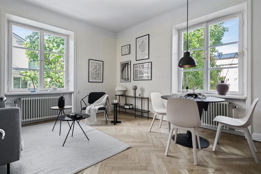 Perfekt planerad 2:a med högt och fritt hörnläge i mysig förening i populära Atlas.- Härligt ljusinsläpp- Optimal planlösning- Sankt Eriksplan- Hiss- Vindsförråd- Utmärkta kommunikationerVälkommen till en fantastiskt fin tvåa i vacker fastighet anno 1928 med charmiga 20-tals detaljer! Bostaden har stora fönster med djupa fönsternischer och spanjoletter samt vacker fiskbensparkett som kompletteras av fina furuplank i sovrummet. Flera fönster i två vädersträck och högt i tak skapar ett genomgående fint ljusinsläpp och en härlig känsla av rymd i hela bostaden. Vardagsrummet i öppen lösning mot köket skapar den perfekta platsen för umgänge och samvaro. Här får man plats med soffa, soffbord, mediamöbel samt matbord med 4-6 sittplatser. Köket är ljust och luftigt och har tidlös inredning med vitlaserade skåpsluckor samt diskmaskin. Vidare disponerar bostaden ett trevligt sovrum med plats för dubbelsäng, sidobord och smart förvaring i väggnischer och ett fint förvaringskåp från 1920-tal. Helkaklat badrum utrustat med tvättmaskin. Välkomnande och ljus hall med gott om plats för förvaring. Till lägenheten hör ett vindsförråd och i källaren finns det cykelförråd bredvid den nyrenoverade tvättstugan.Atlasområdet är lugnt och mysigt med ett centralt läge precis intill Sankt Eriksplan. Området kallas ofta Lilla Paris för dess pittoreska och charmiga atmosfär med vackra fastigheter från 20-talet. På 1930-talet bodde Astrid Lindgren i området som också gett inspiration till många av hennes böcker, t.ex. så flyger Karlsson på taket över takåsarna i just Atlasområdet. I de levande kvarteren finns mysiga restauranger som exempelvis Portal, Torsgatan 78 och den klassiskt italienska kvartersrestaurangen Degiulio’s Il Forno. Den som önskar större utbud behöver inte gå långt; Atlasområdet kantas av massvis med välkända restauranger med mat från all världens hörn. Här finns även ett flertal matvarubutiker samt caféer och butiker. För den som önskar mer shopping finns Västermalmsgallerian en kort promenad bort. Här finns också närhet till härliga grönområden. Här erbjuds direkt närhet till Sankt Eriksplan med alla dess kommunikationer med både bussar och tunnelbana.