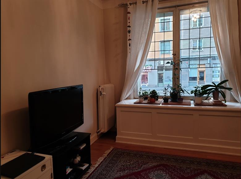 Charmig lägenhet, högt i tak med fungerande öppen spis. Mycket förvaringsutrymme. Balkong mot innergård på 4:e våning, tvättstuga i huset. Delvis möbleradFlera bilder kommer inom kort!