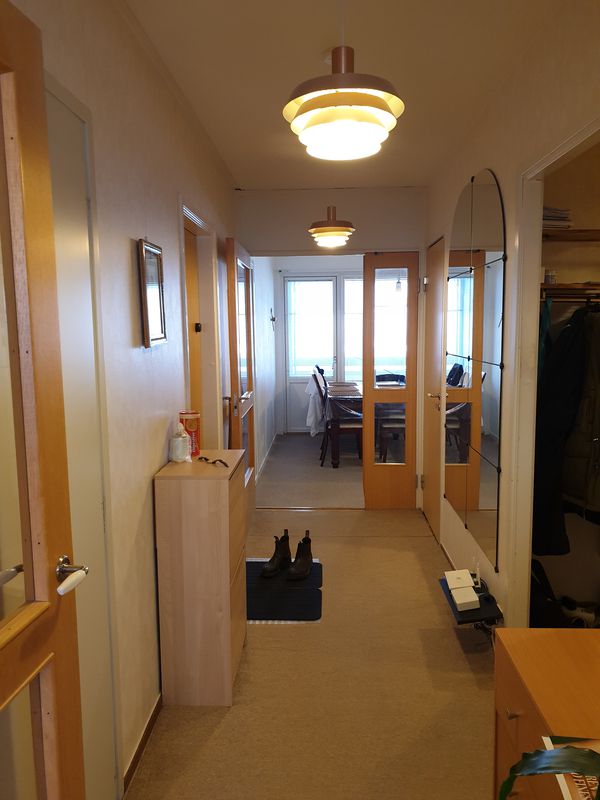 I lägenheten finns gott om förvaring, inglasad balkong, separat toalett samt separat dusch. Det finns även ett stort förråd samt separat klädkammare. Därtill finns kyl och frys i full storlek. Lägenheten är på våning sex av sju med fin utsikt. Det finns en tvättstuga i en annan port som kan nås genom garaget (man slipper alltså gå utomhus).