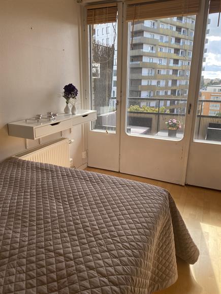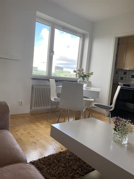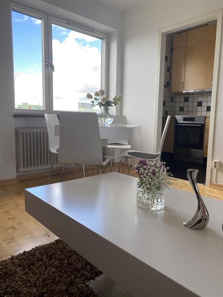 Välplanerad 1,5 med närhet till vatten, natur och goda kommunikationer. Insynsskyddat och trevligt disponerat hem med närhet till allt och generöst ljusinsläpp. Möblerad lägenhet med en 140 cm säng. Passar ensamstående likaväl som ett par.